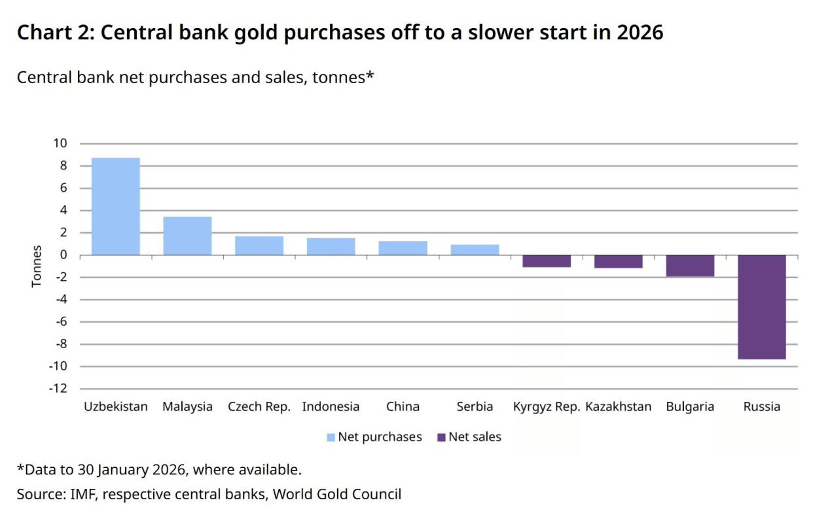 值得注意的是,世界黄金协会3月3日最新研报显示,2026年1月各国央行黄金购买量仅为2025年平均月需求量的不到20%。世界黄金协会认为,金价波动和假期可能让一些央行暂缓行动,不过几乎没有缓和迹象的地缘政治紧张局势,可能会使购金行动在2026年及以后持续下去。