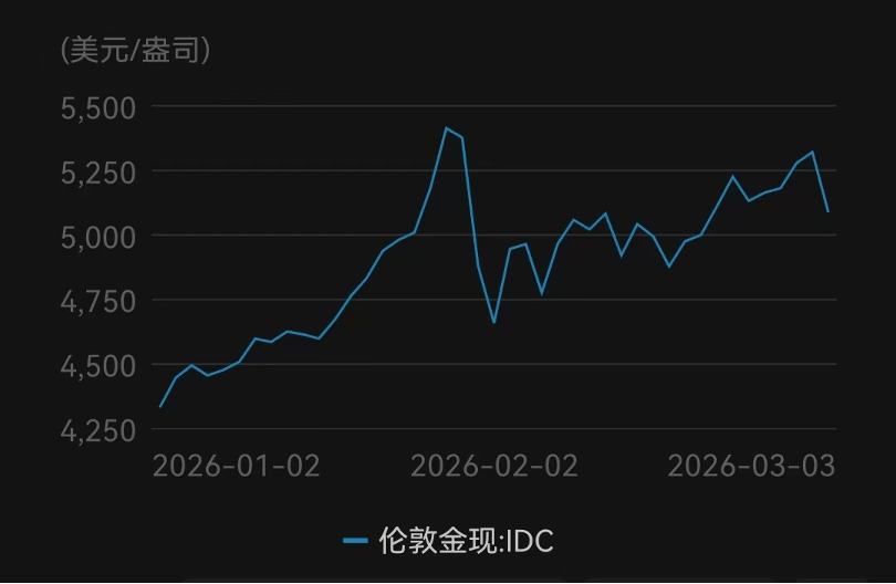 3月4日,黄金重拾涨势,一度突破5200美元/盎司,日内涨超2%;3月5日,现货黄金价格再次迎来波动,一度失守5070美元/盎司,日内跌超1.4%。